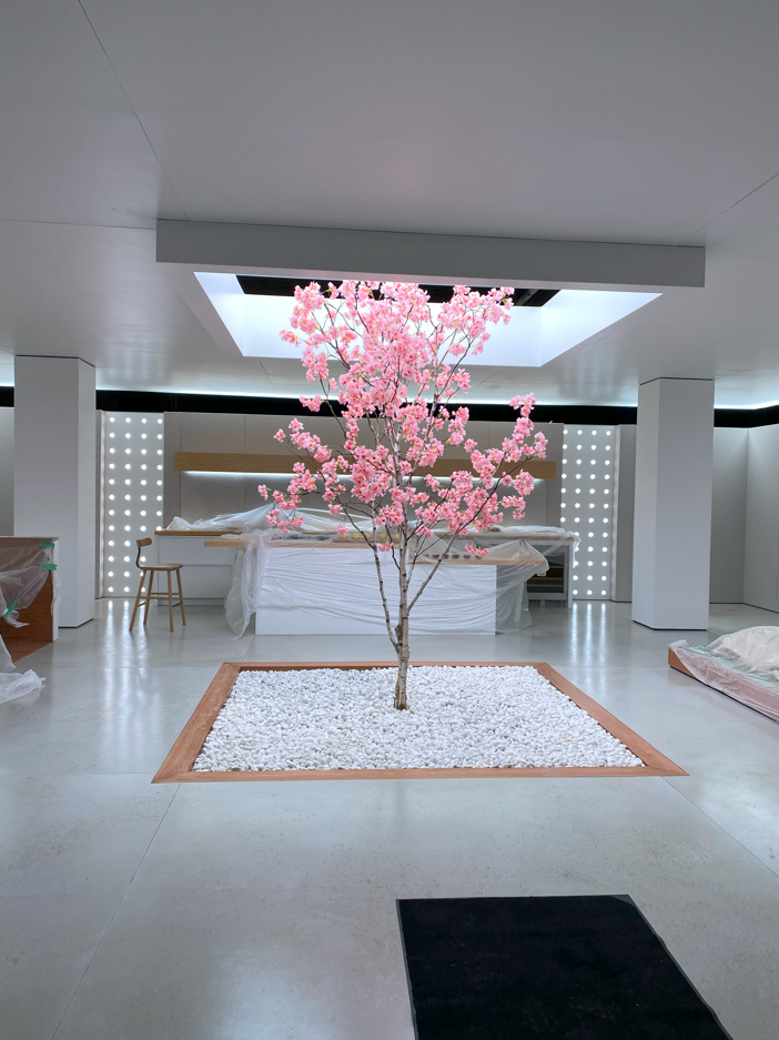 Manufacturing all silk cherry trees and bougainvillea trellis for “market” location.